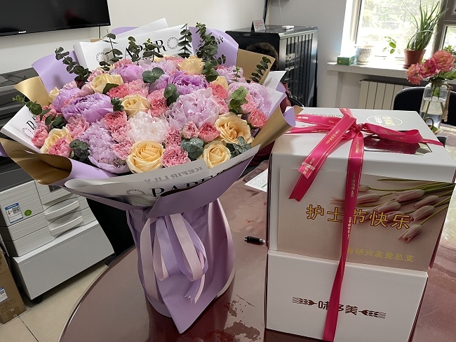 美丽的鲜花、香甜的蛋糕、温馨的祝福使医务人员备受鼓舞,大家纷纷表示在今后的工作中,一定继续弘扬南丁格尔精神,立足岗位、恪尽职守、无私奉献,以专业的护理技术、周到的服务态度、高尚的职业道德守护生命安全与健康,不负“白衣天使”这一光荣称号,为集团70周年华诞增光添彩。