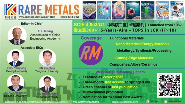 《稀有金属(英文版)》的发展,是自我革新的需要。为了满足新时代对科技文化的需求,《稀有金属(英文版)》始终坚持创新、锐意进取、不断革新。在期刊内容方面,期刊不再拘泥于传统冶金领域,兼容并蓄,将面向未来的能源材料、二维材料、催化材料纳入期刊范畴,做到新与旧的平衡,做到创新和传统的有机结合。在提高质量方面,期刊邀请了一批具有国际化视野的专家进行层层把关,严格筛选,优中选优,使期刊论文质量稳步提升。在平台建设方面,期刊重视服务效果,使用国际先进的投审稿系统,同时打造全方位的融媒体传播平台,增强作者和读者的体验感和科技感。在提升影响力方面,期刊积极宣传、努力合作,开展相关学术研讨会,提高在国内和国际的影响力。