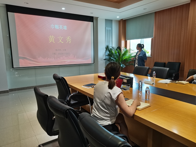 比赛过后,党支部开展了2022年第一期红色故事分享会。王涛、叶静、汪颖、骈龙飞和陈永达5位同志分别选取新疆生产建设兵团王震将军、赵一曼、黄文秀典型人物以及平江起义、十三陵水库等历史事件和故事,采用文字和影音资料的形式,生动地向参会人员讲述红色故事,分享自己对人物或历史学习的感悟。