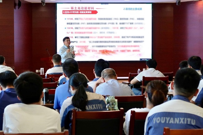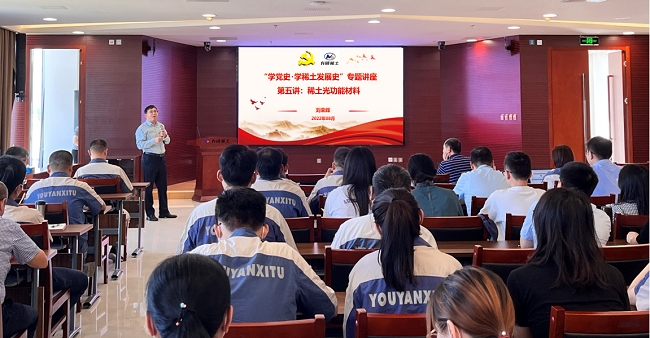 稀土党总支将“学稀土发展史”融入党史学习教育全流程,开展“五史融合”学习教育。目前,“学党史·学稀土发展史”系列讲座已进行了五讲,在广大党员干部中引发热烈反响。