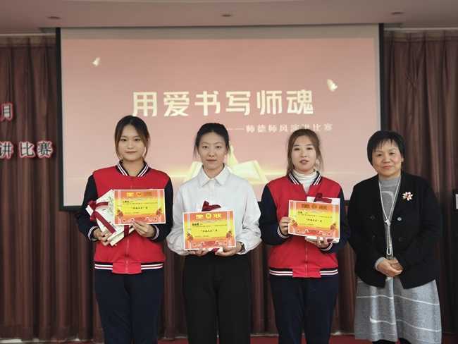 兴友副总经理兼幼儿园园长张福萍向荣获“德馨言表”、“师魂风采”、“育人楷模”、“仁爱之师”四个奖项的13名教师表示祝贺,并为获奖教师颁发奖状及奖品。张福萍指出,师德师风不仅是演讲比赛的主题,更是我们每一位幼儿教师应该时刻铭记在心的信念。作为教师,我们要在自爱、自立、自强,不断加强自身专业素养与能力的同时,潜移默化的影响幼儿。她勉励青年教师要提高政治站位,落实立德树人根本任务,加强对《中华人民共和国学前教育法》的学习,做到以德立身、以德立学、以德施教,努力成为有理想信念、有道德情操、有扎实学识、有仁爱之心的“四有”好教师。