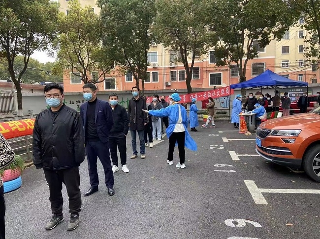 封控社区物资采购不便利,员工积极参与团购物资的发放。