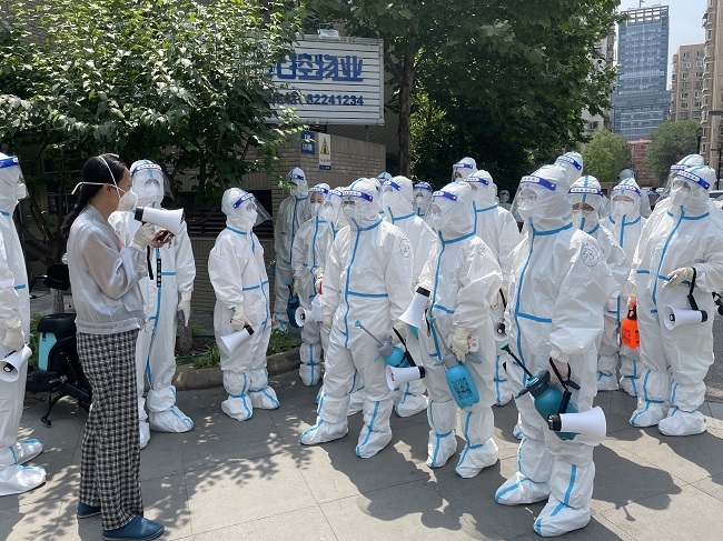 上午8点许,志愿者们集合完毕。按照社区工作安排,入户采样工作陆续开始。志愿者们配合核酸检测医务人员,挨家挨户敲门通知、收还身份证、细心进行身份登记,每栋楼、每个单元、每一楼层、每个人,确保无一遗漏。当天北京的最高气温到达32℃,志愿者和医务人员们身着密不透风的防护服,任凭衣物被汗水浸透、面罩被水汽模糊,却始终坚守在志愿岗位上,尽职尽责地完成自己的工作使命。许多志愿者们顾不上吃早饭,一直坚持空腹工作到下午3点。