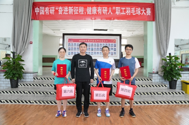 硅队、新材二队获得,优胜奖分别由职能-资环二队、复材-粉材三队获得。集团党委副书记、工会主席王兴权为获奖代表队颁发了奖品和证书,并与大家合影留念。