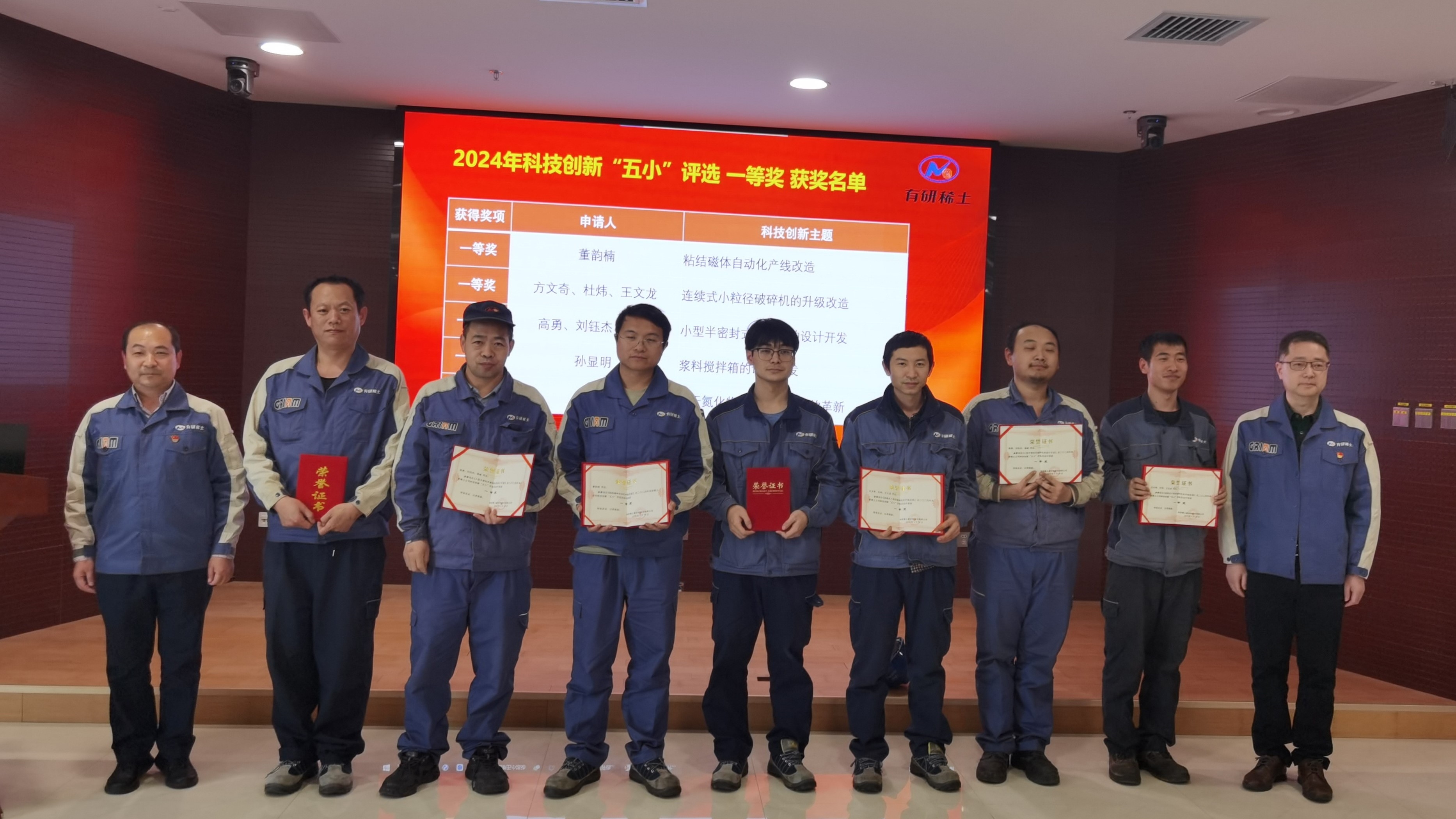 稀土关于表彰2024年度科技创新“五小”的决定》,对获得表彰项目的员工表示祝贺,对所有员工的辛勤工作表示感谢,并向全公司劳动者致以节日问候。