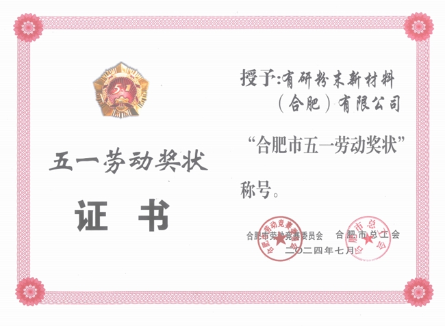 粉末新材料(合肥)有限公司喜获“合肥市五一劳动奖状”。