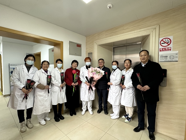 卫生站走访慰问,为女职工们送上鲜花并致以节日的祝福。