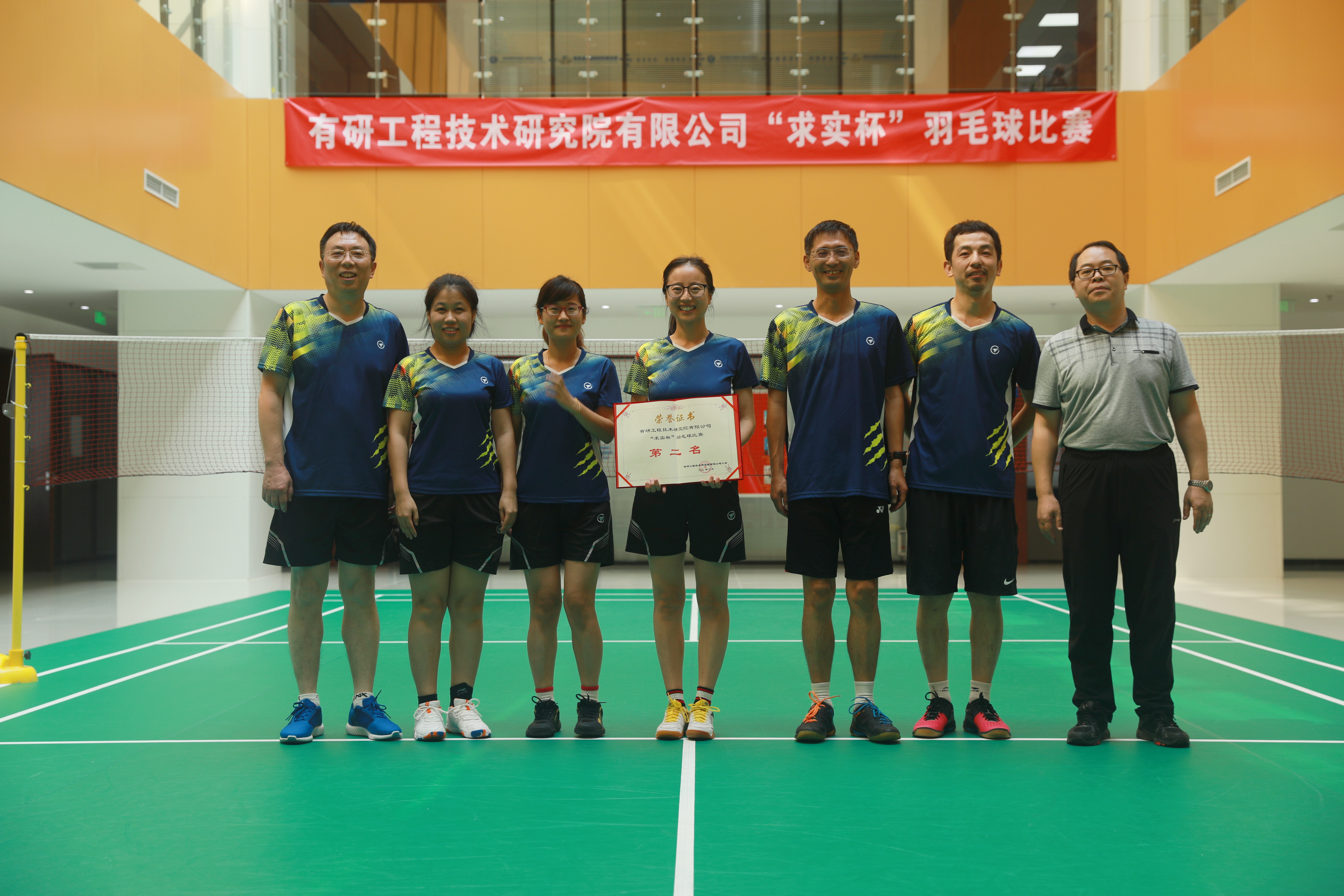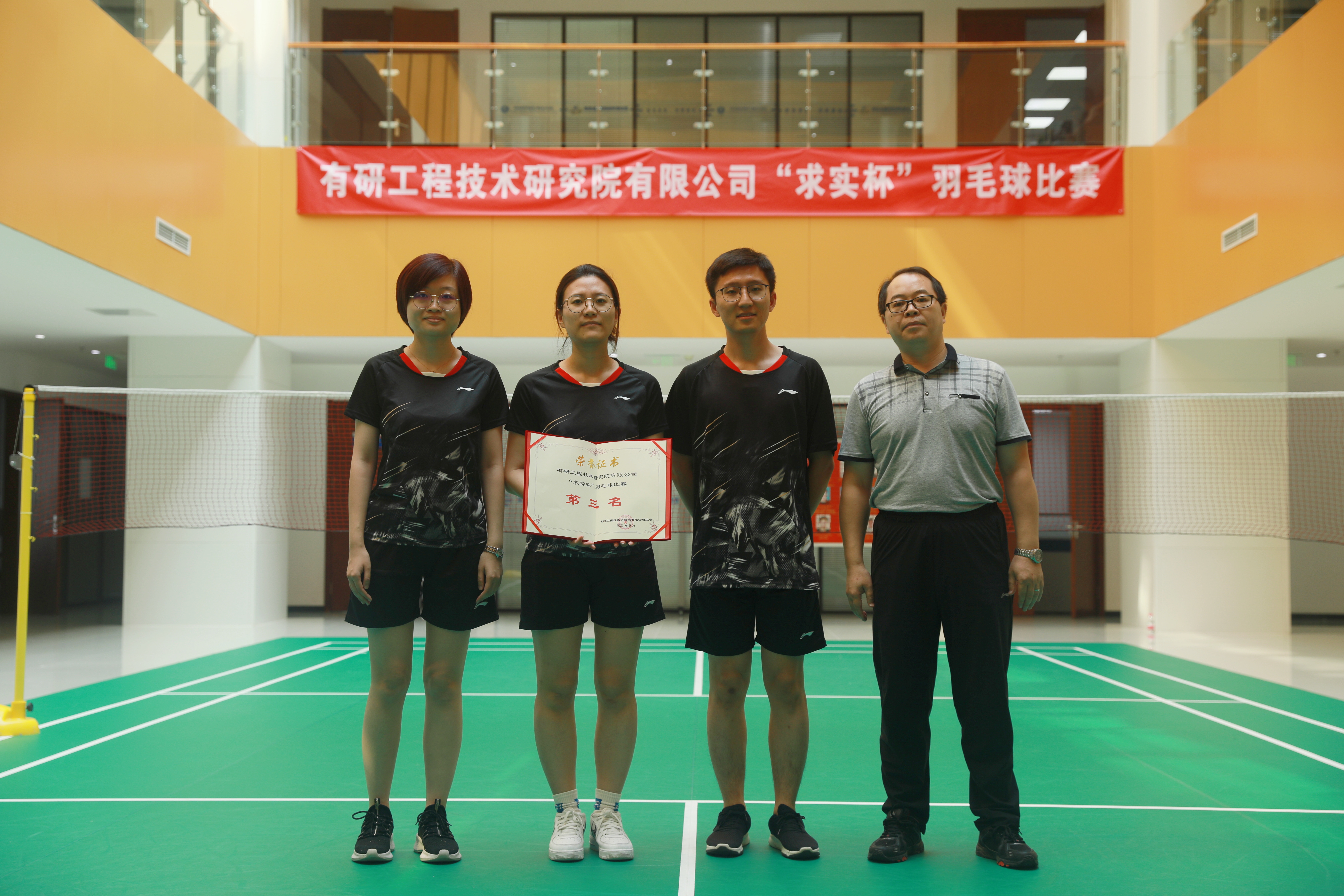 工研院第一届“求实杯”羽毛球团体赛圆满落幕。本届比赛历时8天,共有8支队伍60余人参加比赛,比赛项目包含女子双打、男女混双及男子双打。球场上运动员们情绪高涨,比赛异常激烈、扣人心弦。各部门职工为自己的选手摇旗呐喊,助威声此起彼伏。经过激烈的角逐,最终结构事业部代表队获得第一名,职能部门代表队获得第二名,特种事业部代表队获得第三名。公司党委副书记、纪委书记姚国成为获奖队伍颁奖。