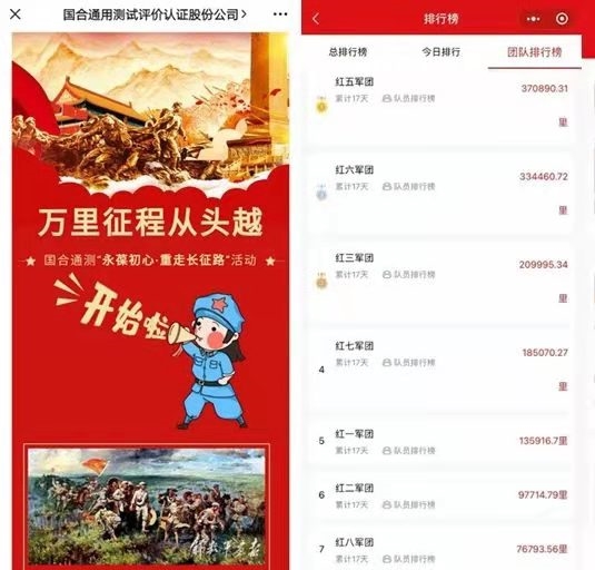 粉材发展各阶段的经典照片中汲取力量,激发全体员工牢记初心使命,奋斗拼搏、锐意进取、敢于担当。举办“观看红色革命影片,弘扬爱国主义精神”活动,通过经典红色影剧,重温党的发展过程中的重大事件。国合通测党委组织开展“永葆初心·重走长征路”线上活动,党员群众积极参与、奋勇争先,利用工余时间积累步数兑换里程,在长走的同时积极学习党史知识,增强学习的行动自觉。六合彩特码