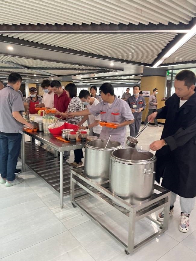 新材各所属公司持续提高食堂菜品种类、质量和服务水平,合理搭配菜谱,增设调料台,且根据季节不同每天为员工准备水果、牛奶、酸奶、绿豆汤等饮品辅食;按需配备微波炉、冰箱等设备,同时严格要求用餐环境,提高员工用餐满意度,提升归属感和幸福感。