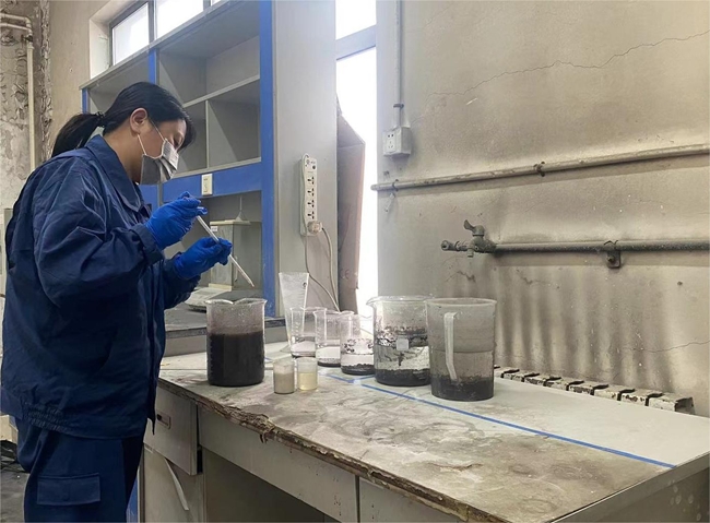 技术人员:污水的变化多种多样,即使是同一个产线排放的污水,每天的情况都是不同的,这需要技术人员对收集到的污水进行初期分析,调试出配比合适的药剂,再对污水进行批量处理。通过多年的实验积累,她能够做到看水的颜色和状态分析出所需要添加药剂的品种和药量,大大提高了水处理效率。