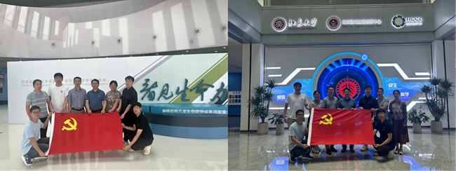 共同推动主题教育走深走实,自觉履行高水平科技自立自强的使命担当。双方一同前往“高水平科技自立自强”怀柔现场教学点,参观“大国重器多模态跨尺度生物医学成像设施”和北京激光加速创新中心,详细了解多模态设施和激光加速创新中心发展历程、目标定位、运行情况和创新成果。通过老师现场讲解,更加深刻领悟坚持创新在我国现代化建设全局中的核心地位,是在新形势下实现中华民族伟大复兴战略全局,应对当今世界百年未有之大变局的重要战略举措;通过现场观摩学习、深入开展调查研究,了解先进经验与前沿技术,更加深刻地感受到科技工作者为破解技术制约“卡脖子”难题作出的重要贡献。通过共建交流,双方深刻感悟科技强国的深远意义,更进一步坚定了理想信念,充分认识所肩负的使命任务,同时也进一步加深了双方基层党支部的彼此了解,为下一步党建交流和业务合作奠定了坚实基础。