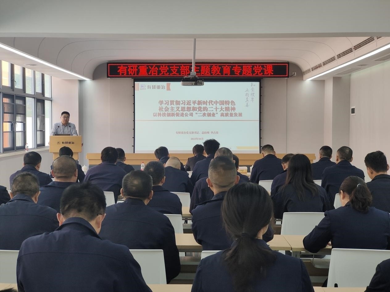 重冶党支部书记、总经理李占荣以“学习贯彻习近平新时代中国特色社会主义思想和党的二十大精神 以科技创新促进公司‘二次创业’高质量发展”为题讲授专题党课,带领全体党员深入学习习近平新时代中国特色社会主义思想和党的二十大精神,并结合“学思想,强党性,重实践,建新功”的总要求,向大家讲授了公司“二次创业”的总体思路、目标和实施路径,号召全体党员干部要以主题教育为契机,坚持学思想、强党性、重实践、建新功,牢牢把握新时代新征程国资央企工作的总目标总原则总要求,坚持“一个目标”,用好“两个途径”,聚焦提升创新能力和价值创造能力,紧紧扭住科技、效率、人才、品牌四个要素,统筹推进“二次创业”的各项工作。